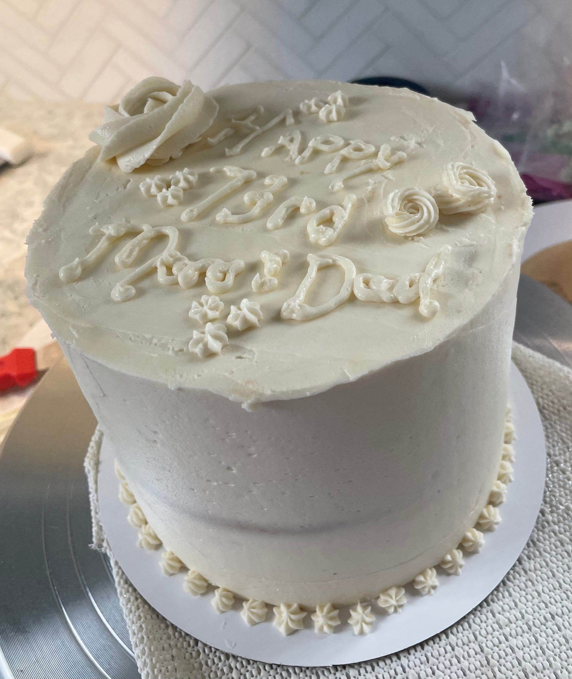 Price starts at $85. The basic vanilla cake is endlessly customizable. Different colors, piped shapes, sprinkles, and combinations thereof will result in a completely unique cake just for you! This includes fillings as well, fruit or chocolate.